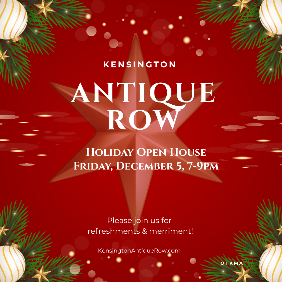 2025 Holiday Open House Kensington Antique Row Holiday Open House Friday, December 5th, 2024 from 7:00 – 9:00 p.m Join Us For refreshments & Merriment!